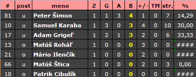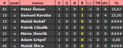 V tretej tretine sme ale súpera ďalej nešetrili a strelili sme mu ešte dva góly. Gólom na 3:5 si ostrostrelec Karaba skompletizoval svoj druhý hetrik v sezóne a Grigeľ spred brány uzavrel gólový účet tohto stretnutia. Snaživý Matúš Štica, ktorý celý zápas klopal gólu na dvere sa nakoniec nedočkal, ale ak bude hrať takto naďalej, tak sa ho čoskoro určite dočká!